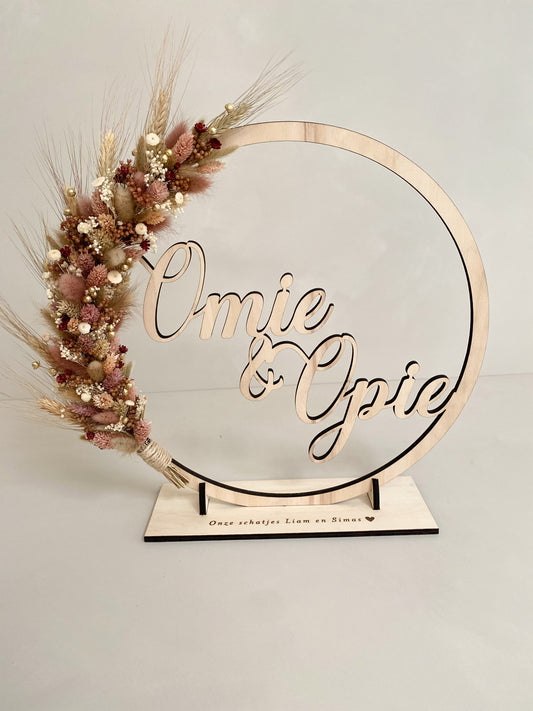 Droogbloemenstuk rechthoek met houten tekst 30 of 40 cm