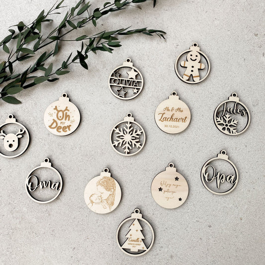Gepersonaliseerde houten kerstbal
