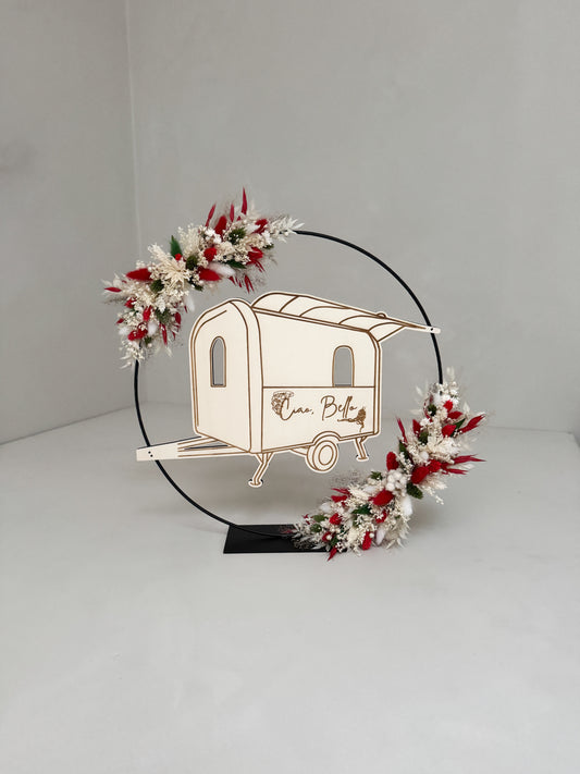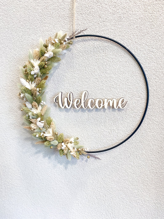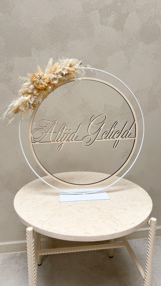 Droogbloemenkrans met houten naam 25, 30 of 40cm