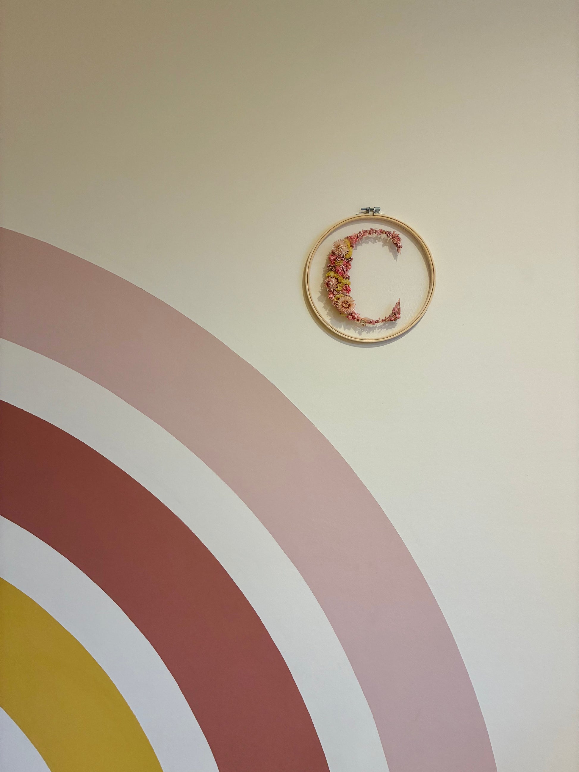 Breng een vleugje dromerige charme in de baby- of kinderkamer met onze handgemaakte bloemeninitiaal. In een elegante borduurhoepel verwerken we zorgvuldig geselecteerde droogbloemen tot het initiaal van jouw kindje. Elke letter wordt met de hand gezet, waardoor geen enkel stuk hetzelfde is — een écht uniek decoratiestuk dat je nergens anders vindt.