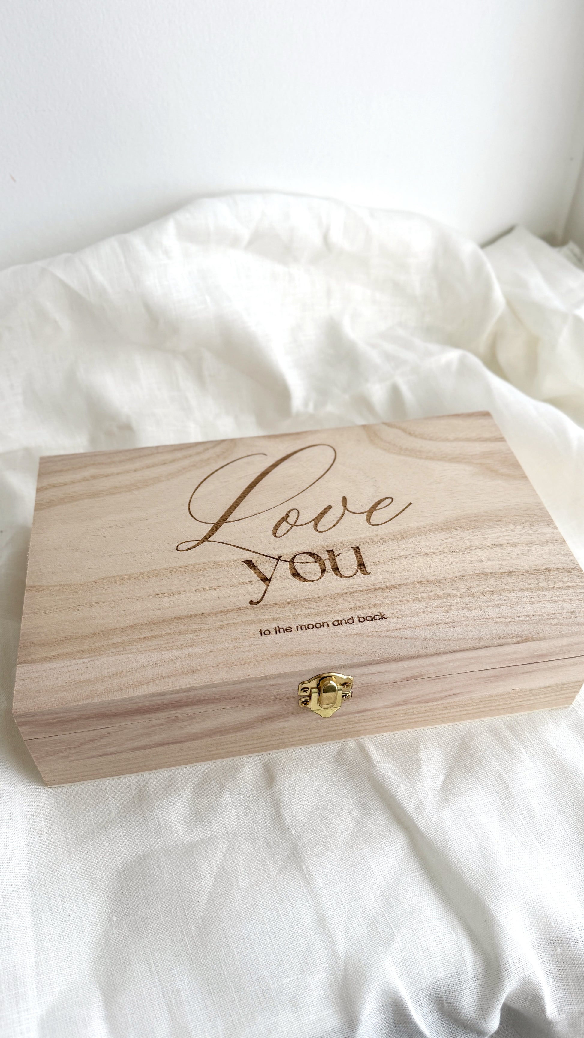 Wat maakt deze doos extra bijzonder? We vullen hem met een heerlijk geurend huisparfum en een kaarsje die niet alleen de ruimte vullen met geur, maar ook een romantische sfeer creëren. En wat dacht je van het kaarsje? Daar zetten we de naam van jouw geliefde op, zodat het cadeau écht van jou komt. Super persoonlijk, super liefdevol! Gegraveerd met de lieve boodschap 'Love you to the moon and back' is deze doos al een cadeau op zich, maar we maken het nog persoonlijker door de inhoud tot in de puntjes af te stemmen op de persoon aan wie je het wil geven.